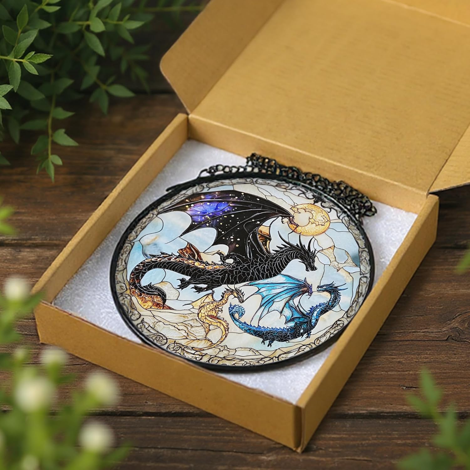 Dragon Stained Glass Window Hanging, 8 Inch Sun Catchers Indoor Window, Suncatchers for Windows Hanging, Home Decor and Christmas, Holiday, Mother's Day, Father's Day, Birthday Gifts for Women, Men