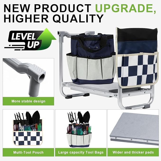 Garden Kneeler and Seat, Wider Thicker Kneeling Pad, Heavy Duty Garden Stool Includes Gardening Tools Pouch and Bag, Convertible Garden Bench Kneeling Chair/Gifts for Parents Women Seniors
