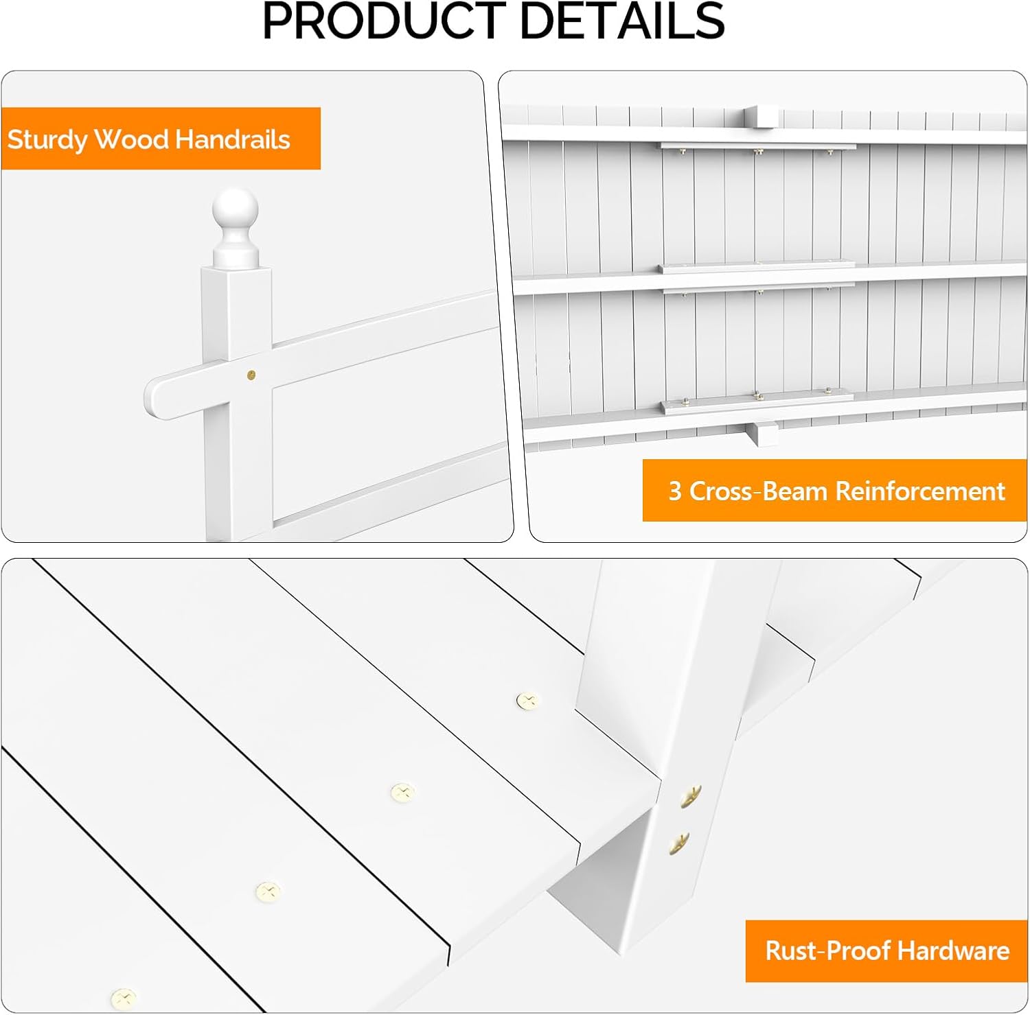 VINGLI Garden Bridge, Classic Wooden Arch with Safety Rails Footbridge (White, 7.5 ft)