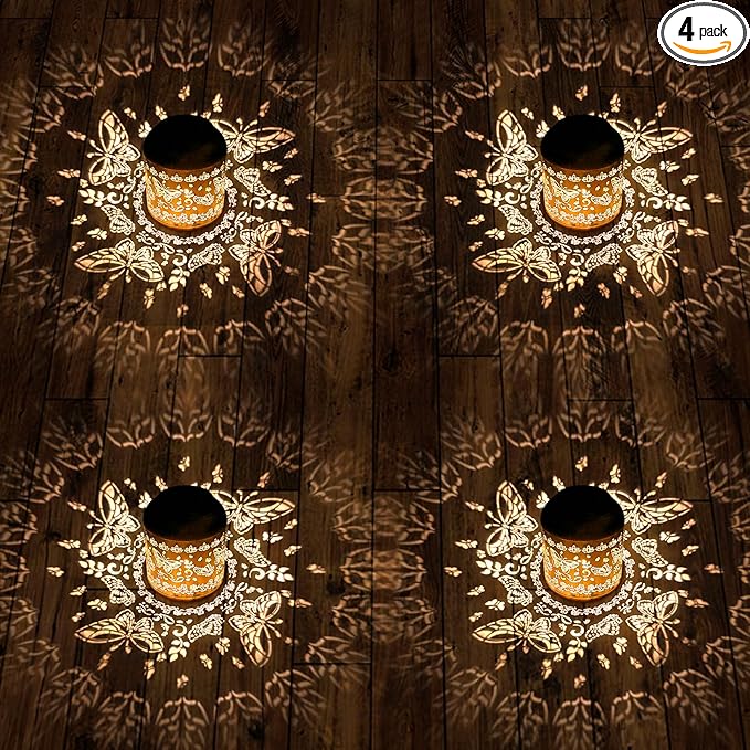 - 【Butterfly Garden Decor】The delicate butterfly and floral cutout design creates a stunning light and shadow effect on the surrounding surface when illuminated, creating a mysterious atmosphere and adding vitality and interest to your garden.