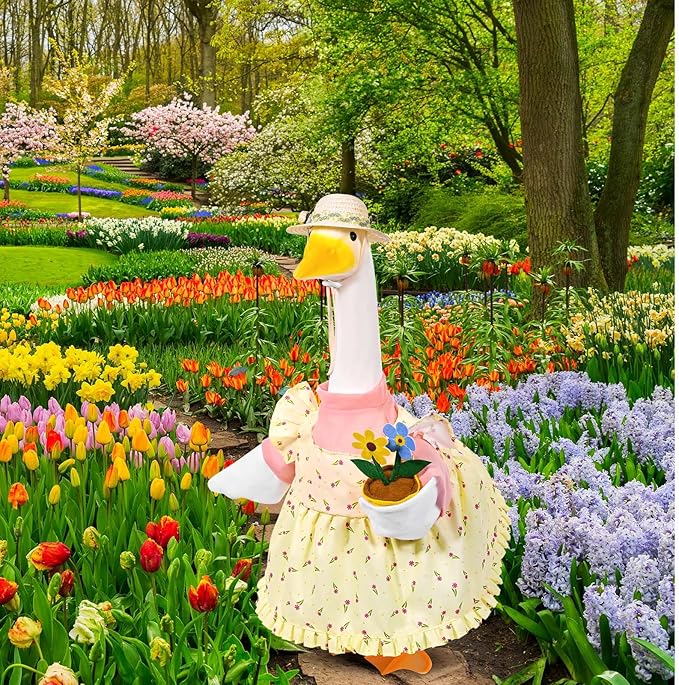 - Gardener Porch Goose Outfit: This delightful goose outfit features a floral print dress, flowered straw hat, and flower pot, creating a sweet porch goose gardener look to welcome guests