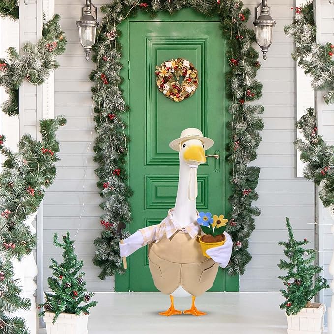 - Easy Seasonal Decor for Any Time of Year: Quickly change your home's style with this porch goose gardener outfit. It's perfect seasonal styling to bring a cheerful garden vibe to your front porch or yard
