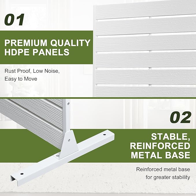 - Durable and All-Weather Protection: This outdoor privacy screen is constructed from premium HDPE panels and a robust metal frame, resisting sun, rain, and humidity. Its sturdy design ensures long-lasting durability in any outdoor environment, from poolside to patio, and it's also suitable for indoor use.